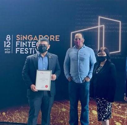 Our NTU FTA CEO Course Certificate presentation ceremony. From left, our recipient Syafiq, Mr. Sopnendu Mohanty, who is the Chief Fintech Office of the Monetary Authority of Singapore (MAS) with our Fintech Academy Founder Dr. Lillian Koh.